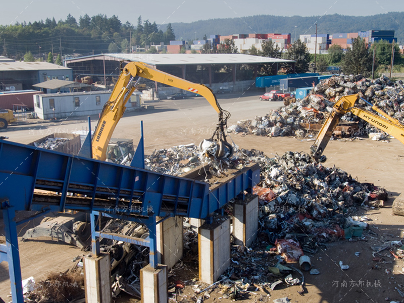 彩鋼瓦破碎機是河南萬邦機械金屬粉碎機系列中用于實現(xiàn)輕薄金屬破碎的一種設(shè)備,在設(shè)備選型上可考慮彩鋼瓦粉碎機配套彩鋼瓦撕碎機進行一體化生產(chǎn)線搭建從而實現(xiàn)自動化彩瓦破碎再生加工。經(jīng)過該機加工后的廢舊彩鋼瓦可有效降低金屬表層油漆覆蓋面,從而穩(wěn)定廢舊金屬冶金成分降低鋼鐵硫、磷含量,再次使用該機破碎后的廢舊彩鋼瓦在轉(zhuǎn)運具有密度高、占方小運輸成本低的優(yōu)勢。在設(shè)備應用上該機被廣泛應用于各大廢品回收站,用來對回收后的彩鋼瓦、薄鐵皮、廢鐵屑、易拉罐、油漆桶等進行破碎加工。在設(shè)備選型上河南萬邦機械可提供800型-3000型彩鋼瓦破碎設(shè)備可供用戶選擇,在處理量上可實現(xiàn)800-28000kg/h。